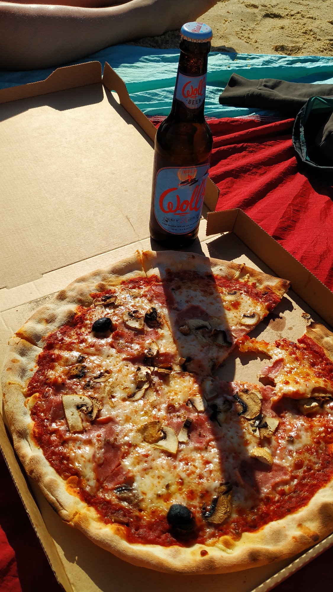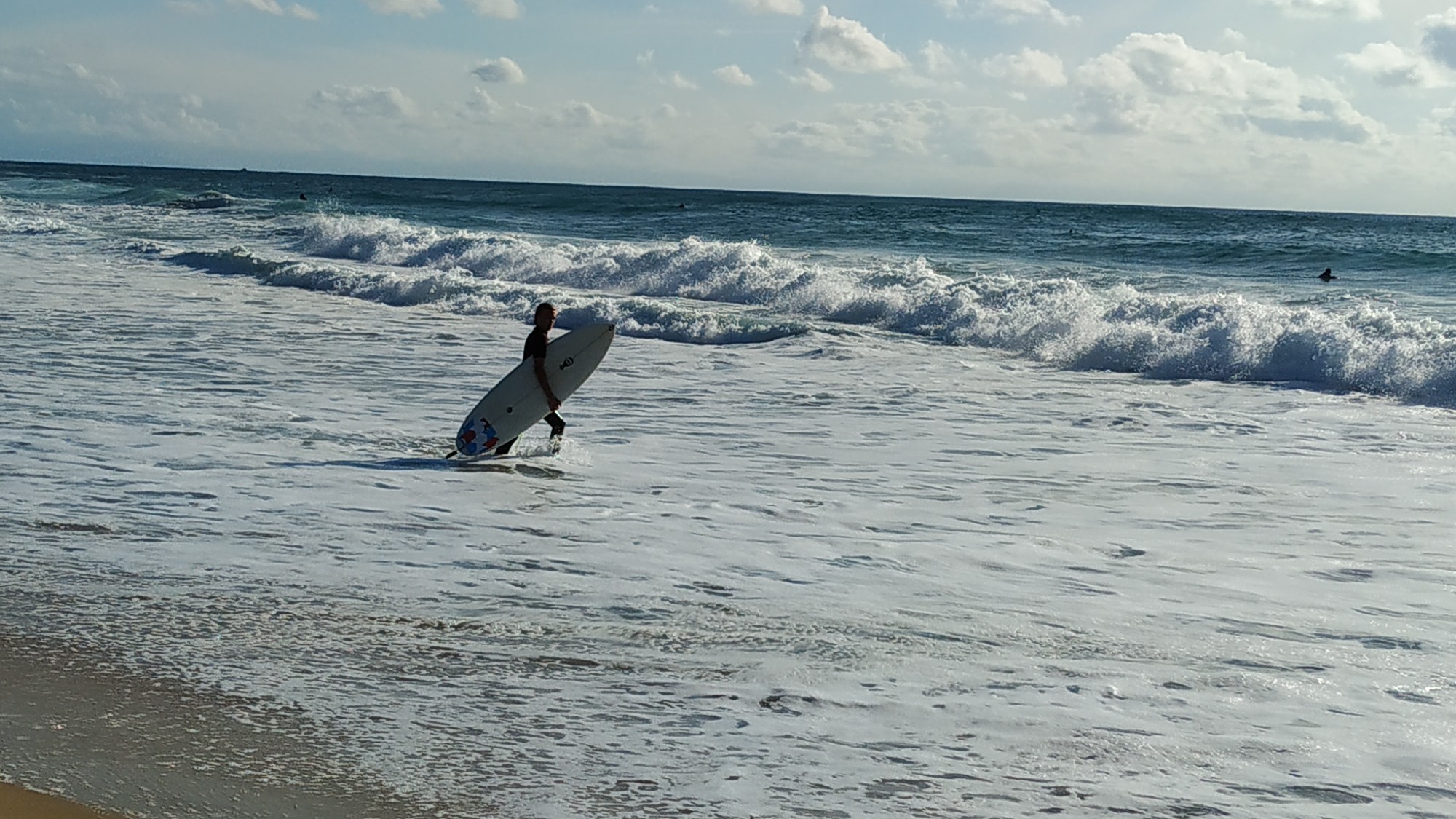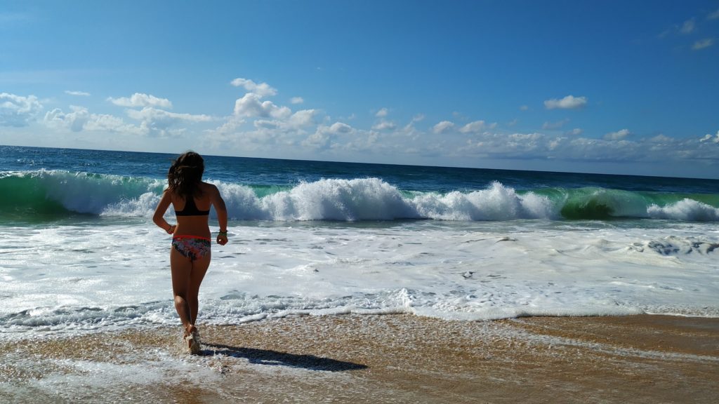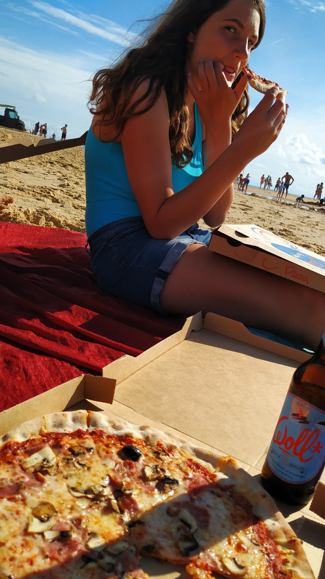 Da Sonntag ist haben wir uns am Abend Pizza gekauft, am Strand verschmaust und dabei den Profis beim Surfen zugeschaut :-).