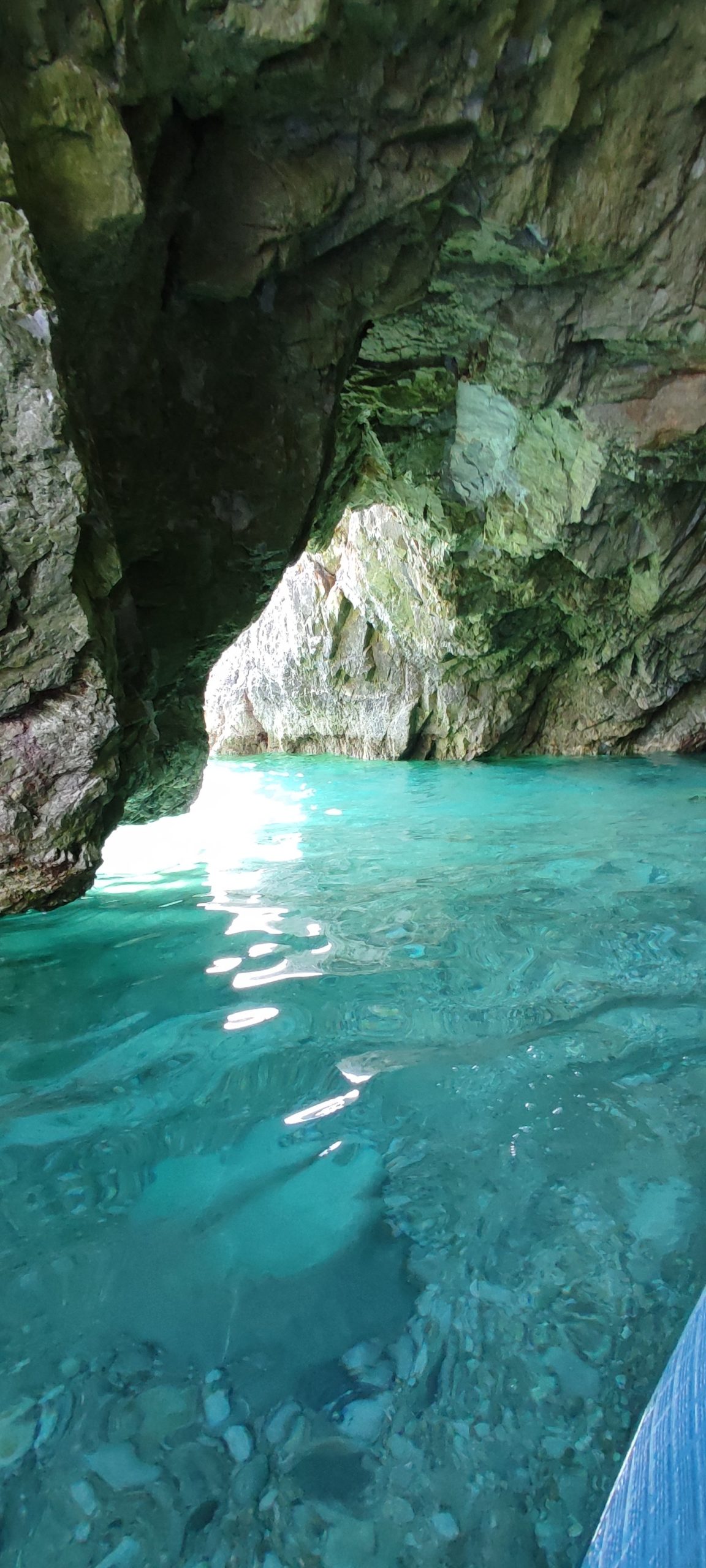… angeblich :-). Ist schon schön, aber ob es wirklich der 15. schönste der Welt ist?!? Schön und spannend war au jeden Fall das Paddeln durch die Grotten und das Wasser ist so türkis und Kristall leuchtend, dass man reinspringen will :-).